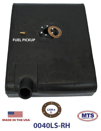 1961-1965 Jeep CJ 3B serial #39838 and up. This is an under the "passengers" seat gas tank with a 6 screw sending unit hole and a straight filler pipe. The pickup tube comes installed on the top of the tank. In-line fuel filter required. Includes new 6-hole sending unit gasket. Dimensions 25" x 18 1/2" x 6 1/2". Replaces # 911895-R.