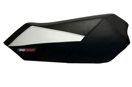 This Seat Concepts seat includes new injection molded foam, hand-sewn cover with Semi-Grip material. This seat is 2" taller than stock. Choose from two accent band colors.