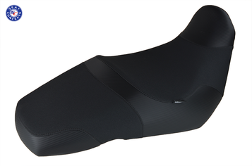 This redesigned shape offers better comfort and support.  The new shape also addresses the slope into the tank issue that the stock seat has. The passenger seating area is built up at the front to help the sliding effect into the main rider.